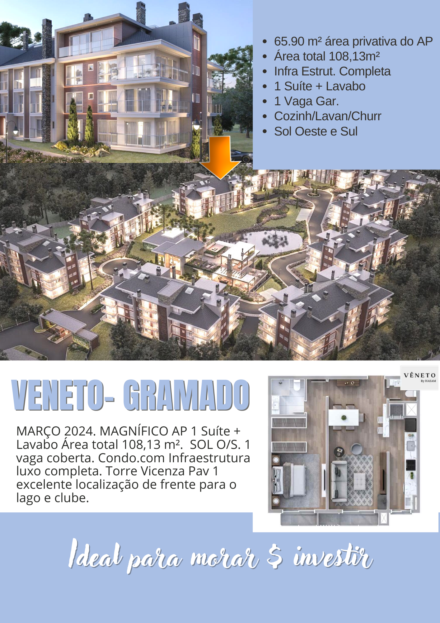 - 📐 65,95m² privativos + vaga de garagem coberta com 78,45m² privativos.